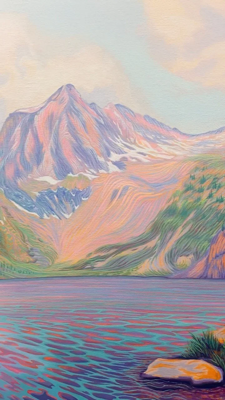Her process typically starts with a hike. She photographs her favorite views and uses her sketchbook to capture the feel of the place on site. Back in her North Boulder studio, she combines her sketches, plein air studies, reference photos, and research into a finished piece.